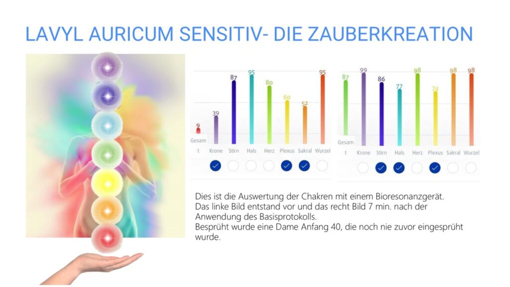 Diese Kreationen arbeiten aber nicht nur auf Zellebene, sondern auch in unserem Energiesystem. Sie aktivieren und reinigen unsere Chakren, entkalken unsere Zirbeldrüse, energetisieren unser Energiesystem und klären unsere Aura sofort. Lavylites bringt wichtige, wertvolle Prozesse ins Rollen und unterstützt meine Arbeit als Energetikerin enorm.